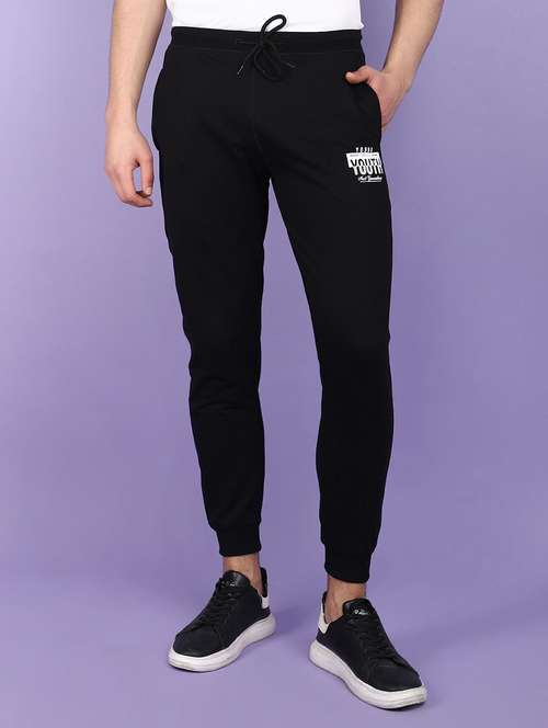 - » men balck placement print mid rise jogger