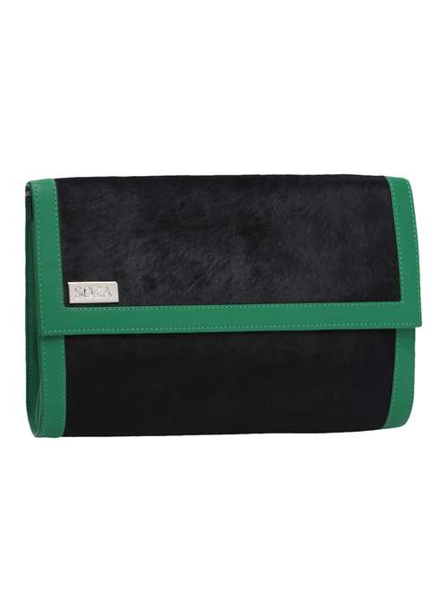 - » black textured leather clutch