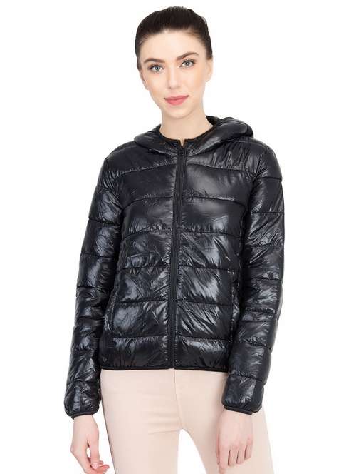 hooded neck quilted polyester jacket