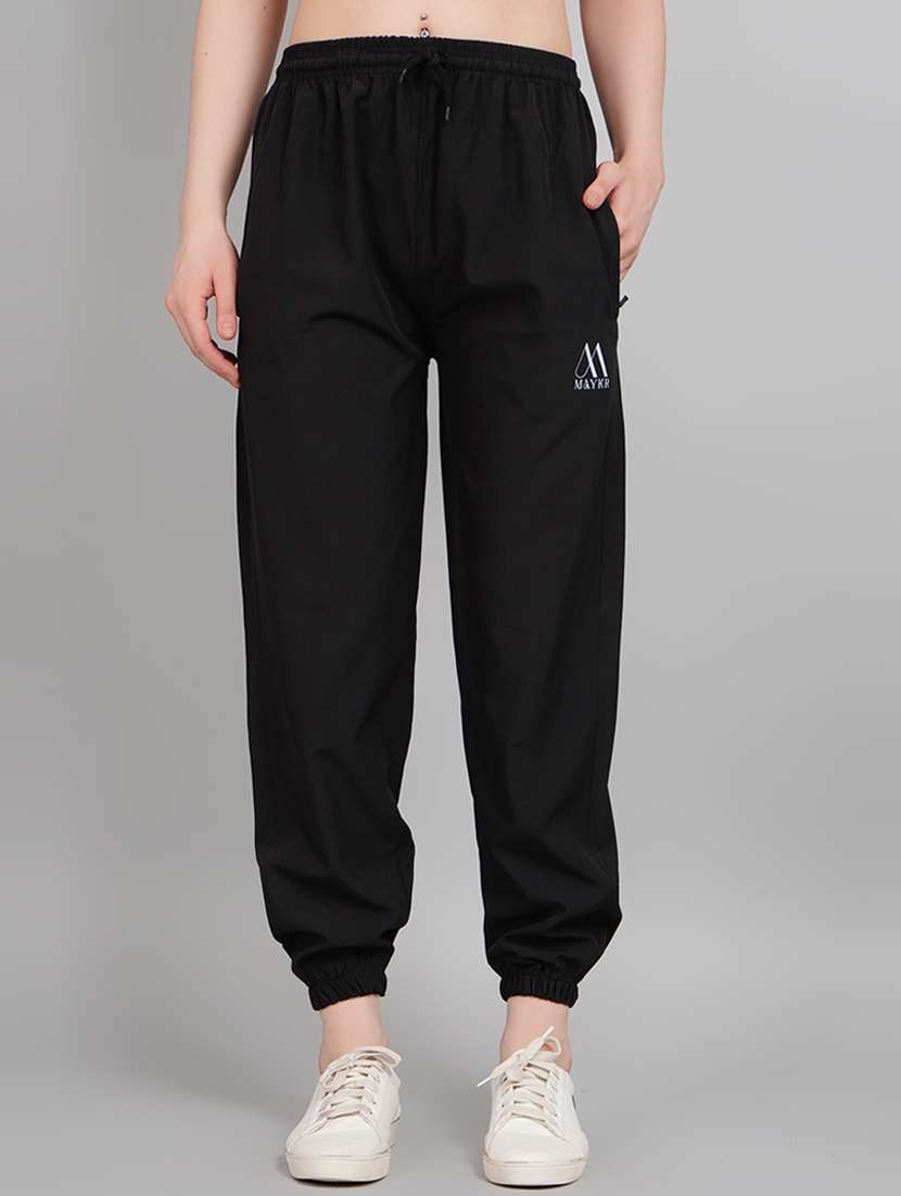 solid black polyester joggers