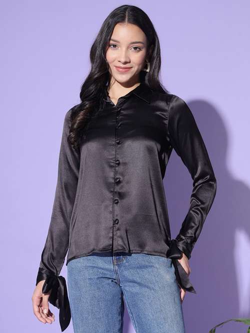 - » women solid black regular shirt
