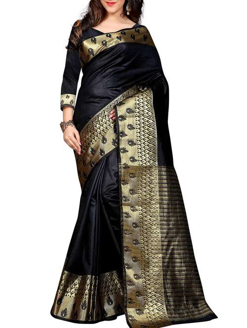 - » black tussar silk bordered saree with blouse
