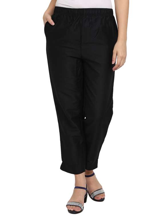 - » women solid black straight fit pant