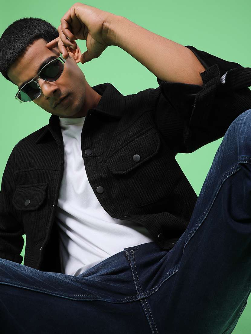 men solid long sleeve regular fit shacket - 22108051 - Very Small Image - 1