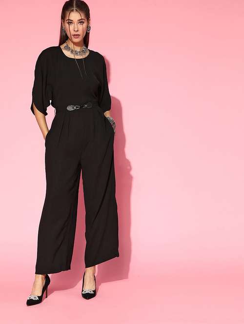 - » black polyester full leg jumpsuit
