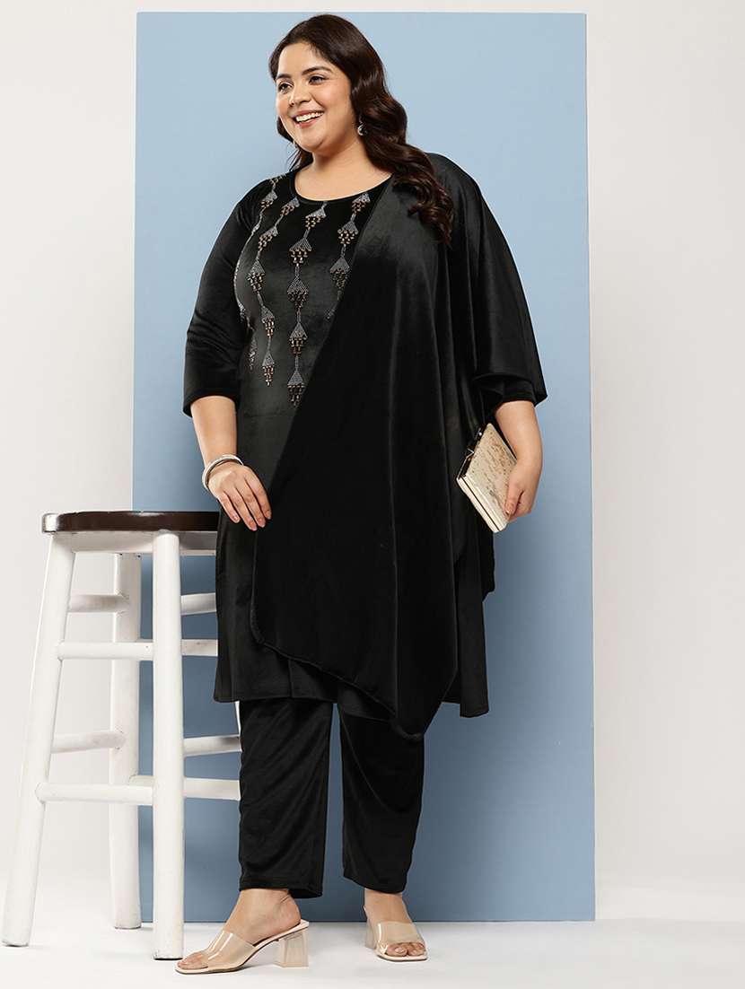 - » women plus size embellished three quarter sleeve kurta pant with dupatta set