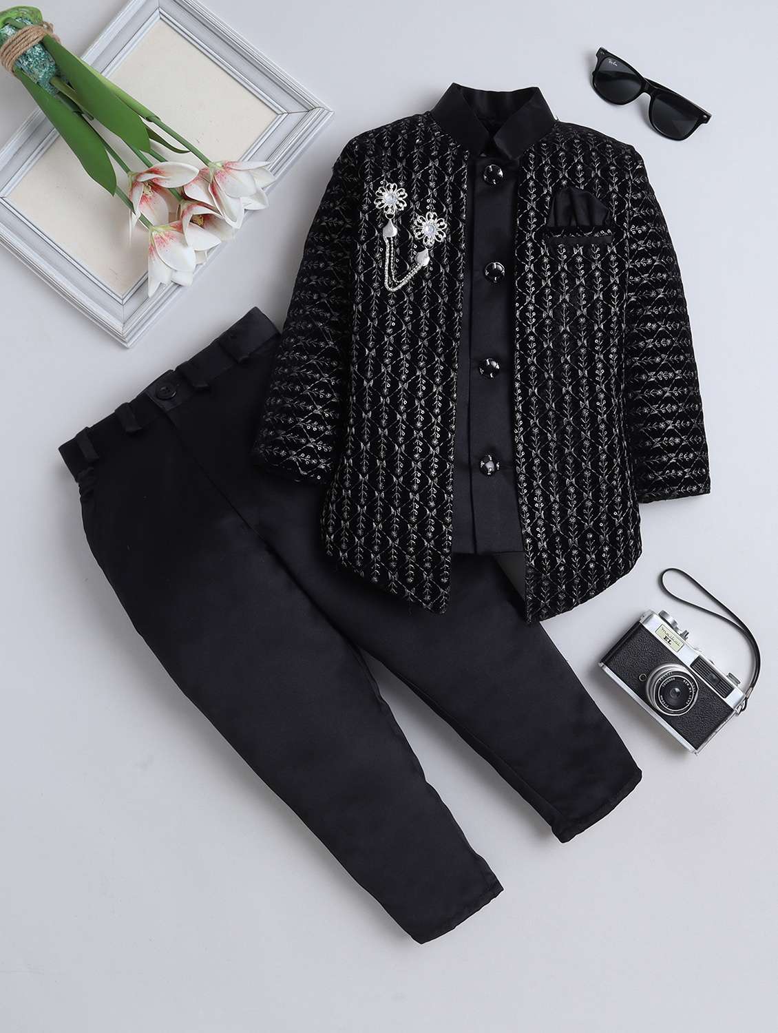 boys embroidered long sleeve sherwani set