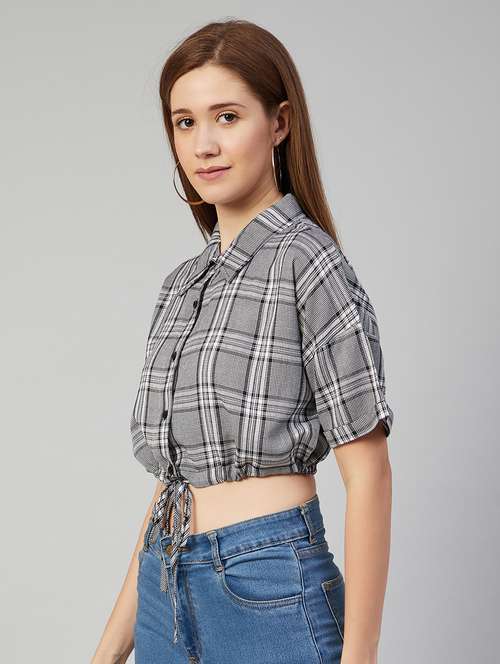 white checked  knotted crop shirt - 18052471 -  Standard Image - 0 white checked  knotted crop shirt - 18052471 -  Zoom Image - 0
