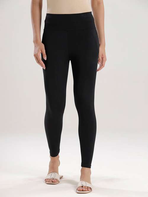 - Brace yourself to adorn the most fashionable leggings of all times available only at LimeRoad from De Moza and look glamorous in black colours.