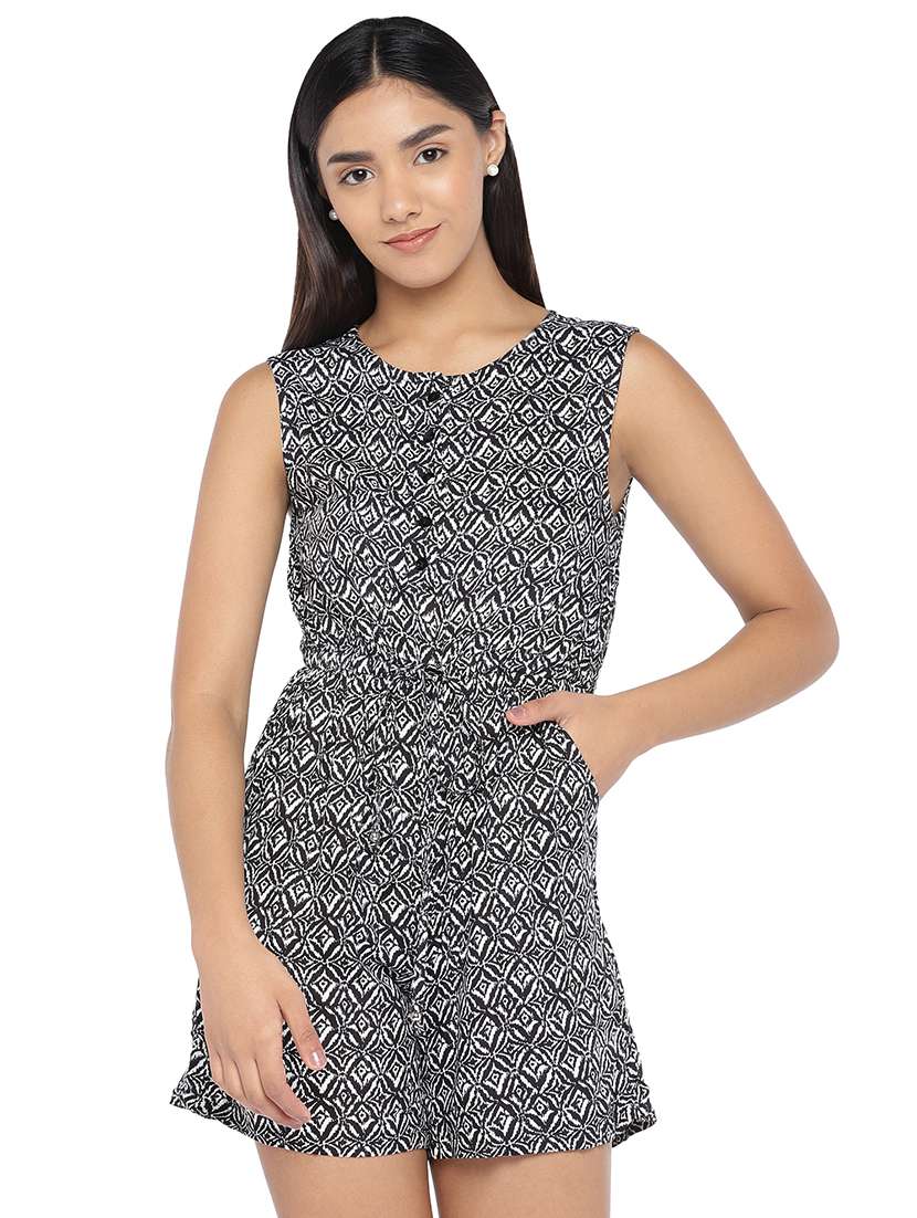 round neck printed romper