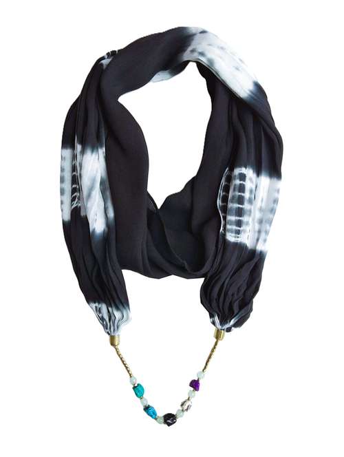 JVNINE Handmade Viscose Scarf with Stylish Indian Jewellery, Fashion Beads Scarf/Muffler, Traditional Beads Necklace with Stole/Wrap Scarves, Printed Design Dupatta with Pendant for Girls & Women
