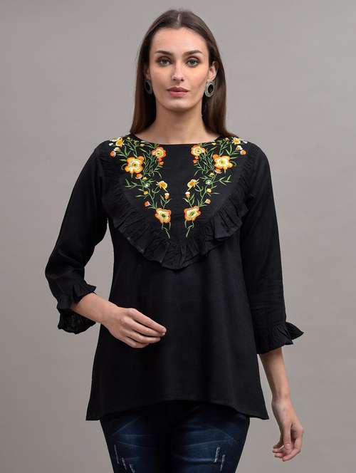 - » black embroidered detailed regular top