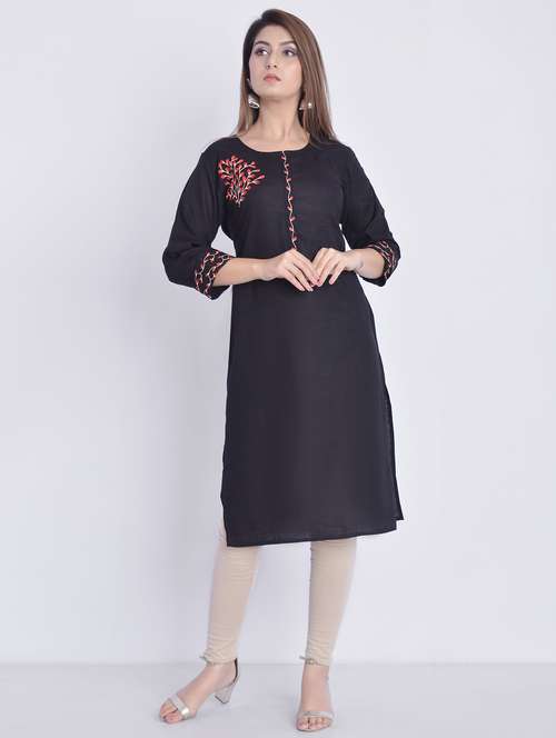 women black round neck straight kurta - 21145408 -  Standard Image - 1 women black round neck straight kurta - 21145408 -  Zoom Image - 1