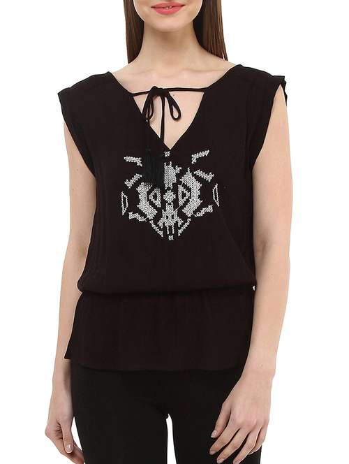 - » tie up neck embroidered top