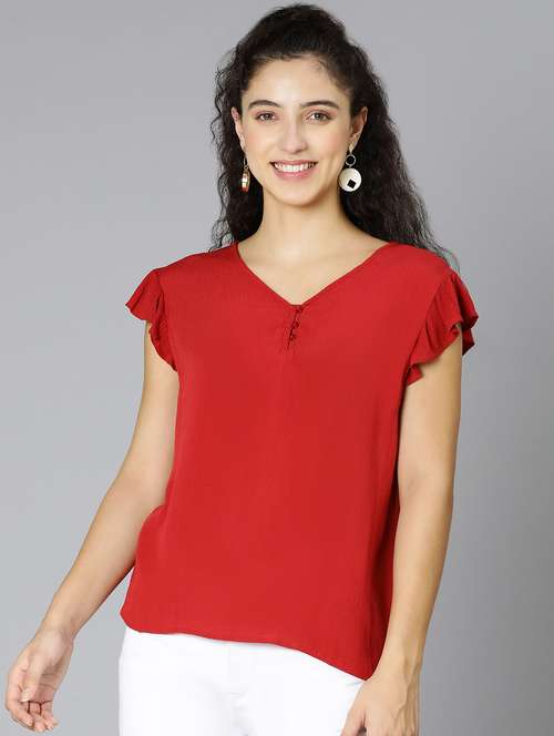 - Opt for this top made up of viscose material and get it in a varied neck design.