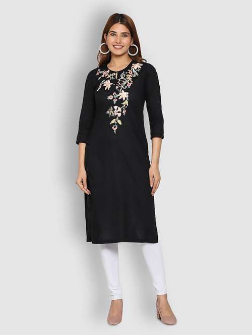 keyhole neck embroidered straight kurta