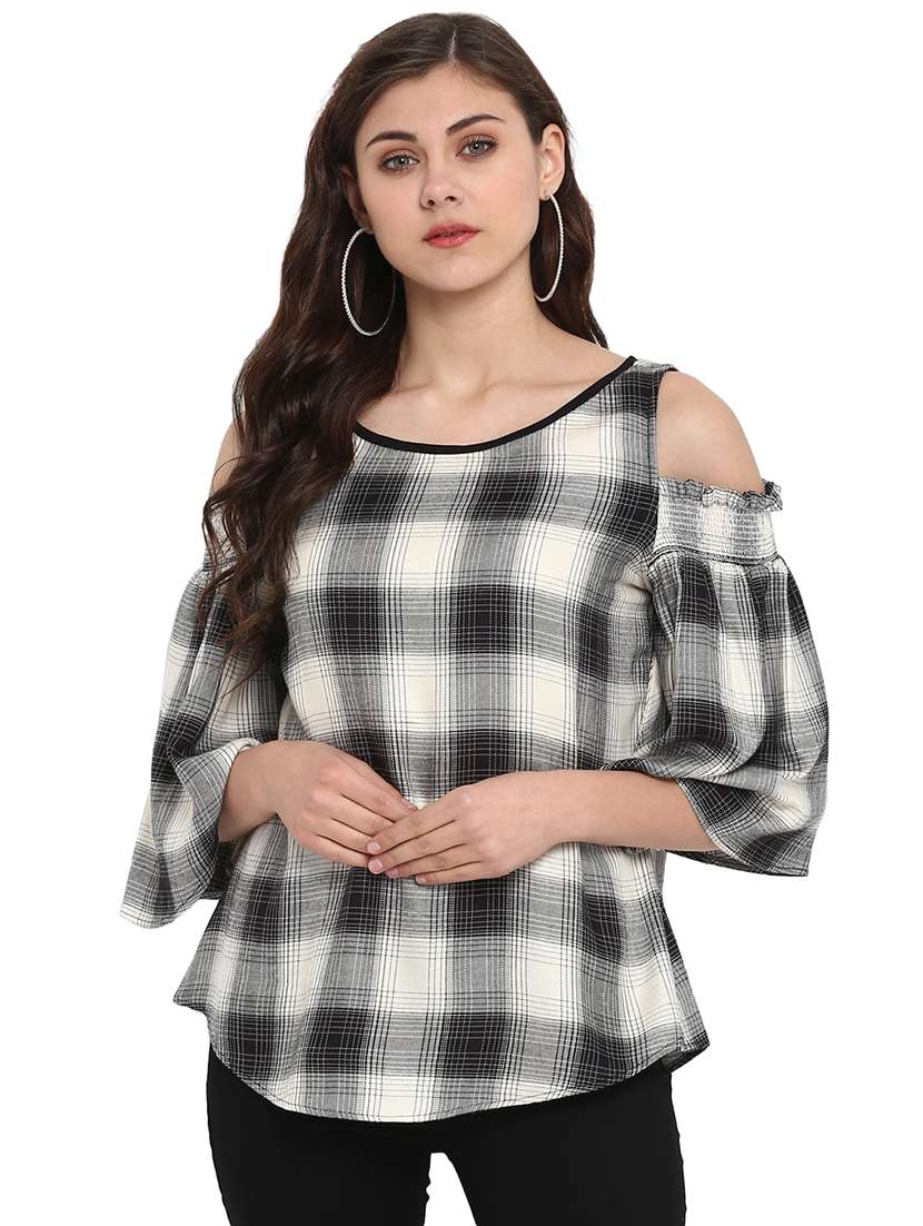 - » cold shoulder checkered top