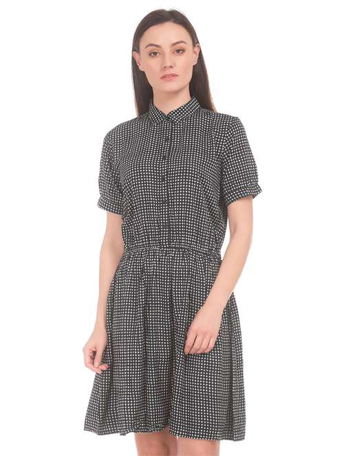 - » shirt collar neck printed a-line dress