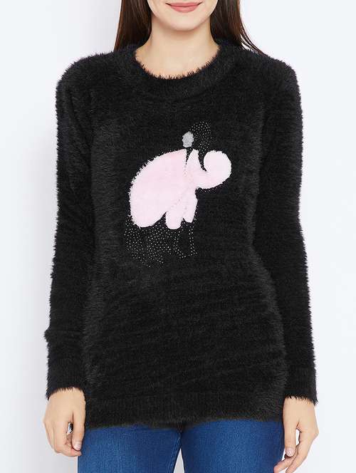 - » embellished faux fur applique top