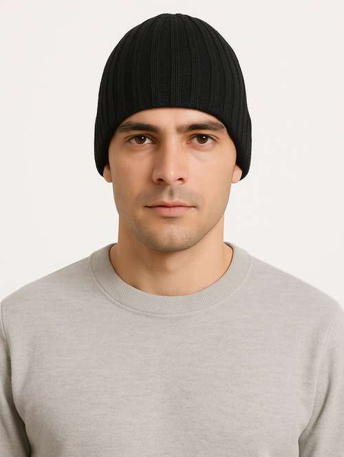 Camey Men’s Solid Ribbed Knit Winter Beanie Cap Soft Warm Stretchable Woolen Cap for Men Stylish Casual Winter Hat