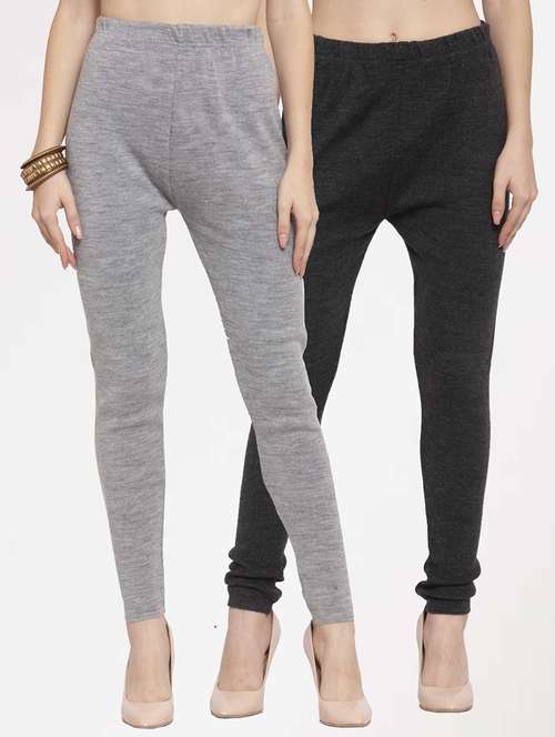 - » women set of 2 multi coloured woollen leggings