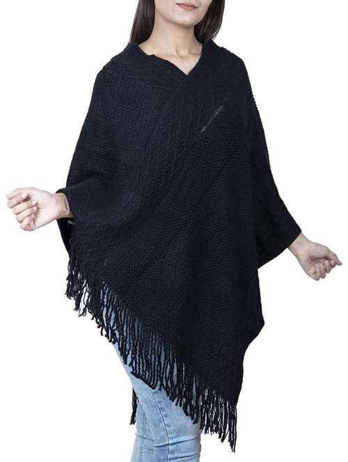 v neck fringed hem solid poncho - 15621653 - Very Small Image - 1