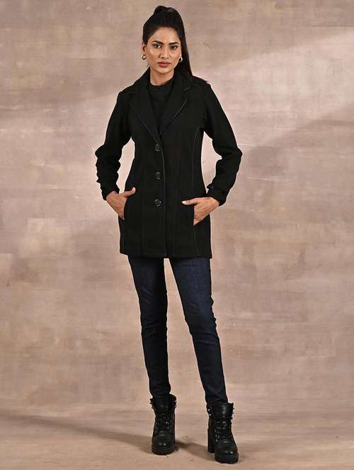 women black solids full sleeves coat