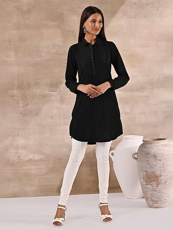 - » women black wool long sleeve straight kurta