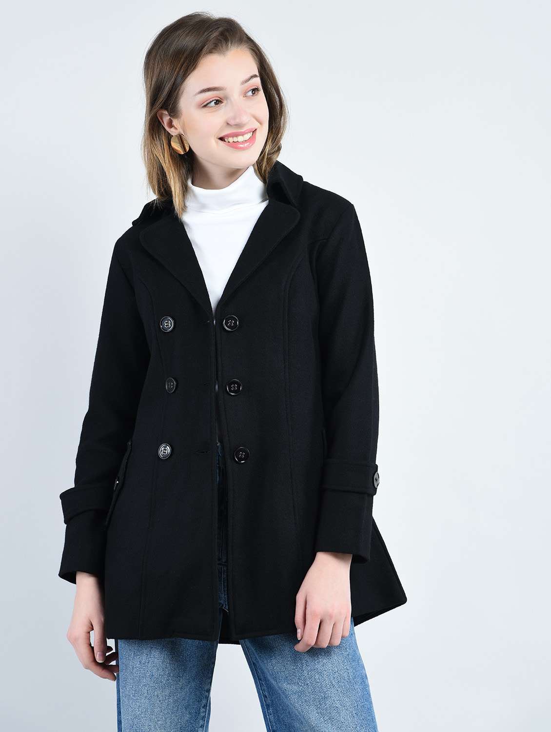 - » black solid woolen trenchcoat
