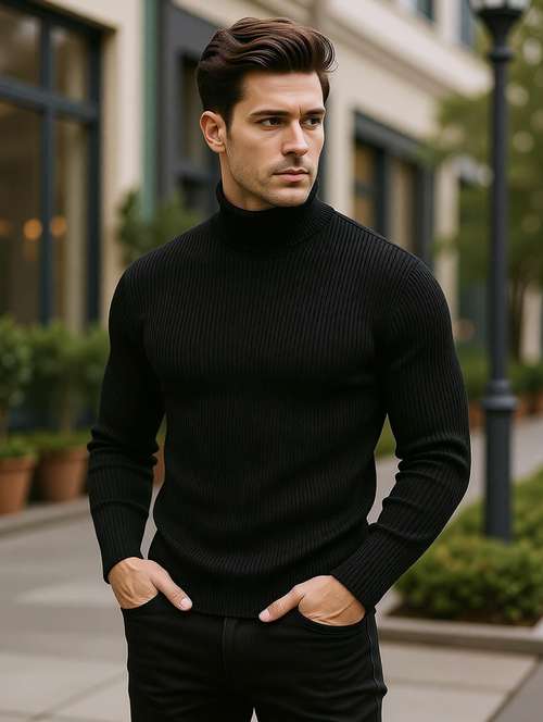 - » men self design long sleeve slim fit pullover