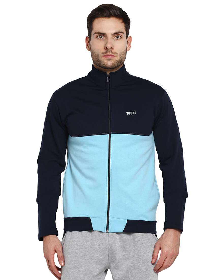 navy blue color block casual jacket