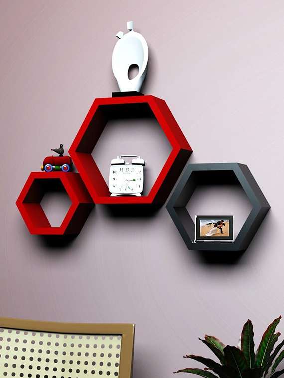 - » home deco black/ red hexagon shape storage wall shelves set of 3