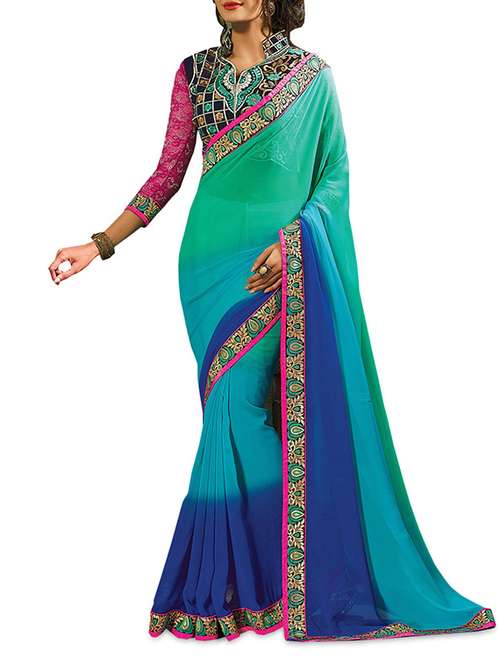 - » light green and blue georgette embroidered saree