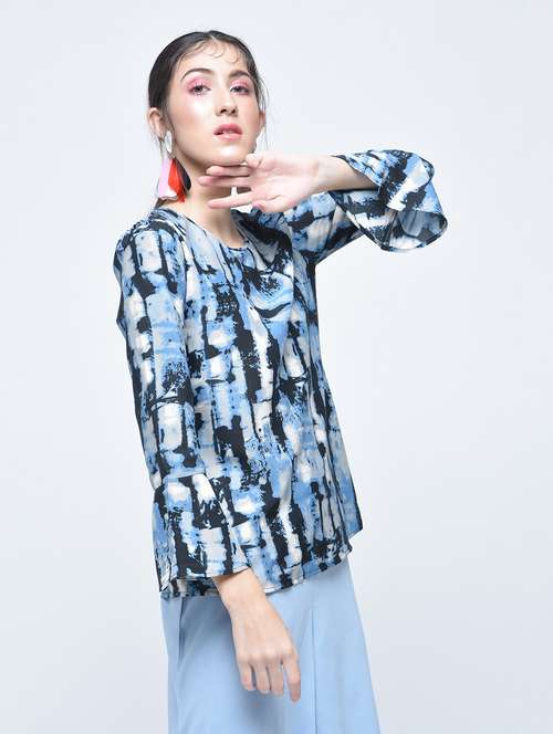 - » abstract print flute sleeved top