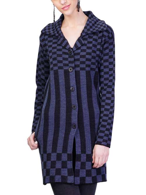 - » blue self design full sleeves coatigan