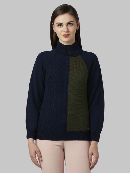 - » turtle neck color block pullover