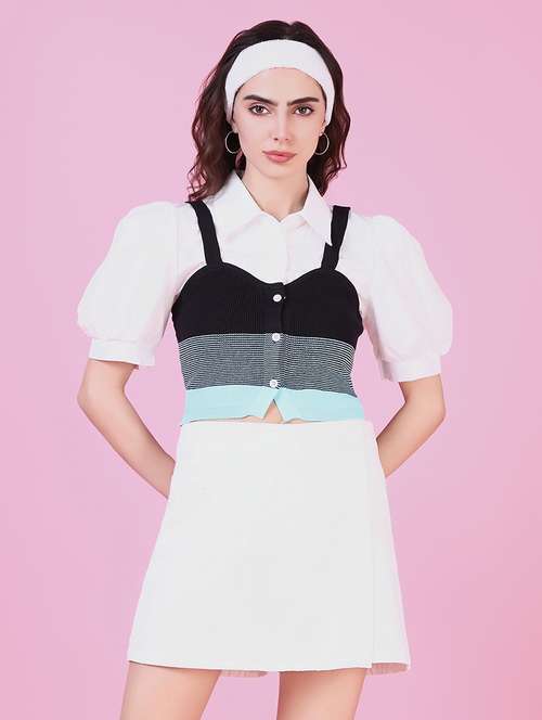 - Opt for this top made up of acrylic material and get it in a varied neck design.