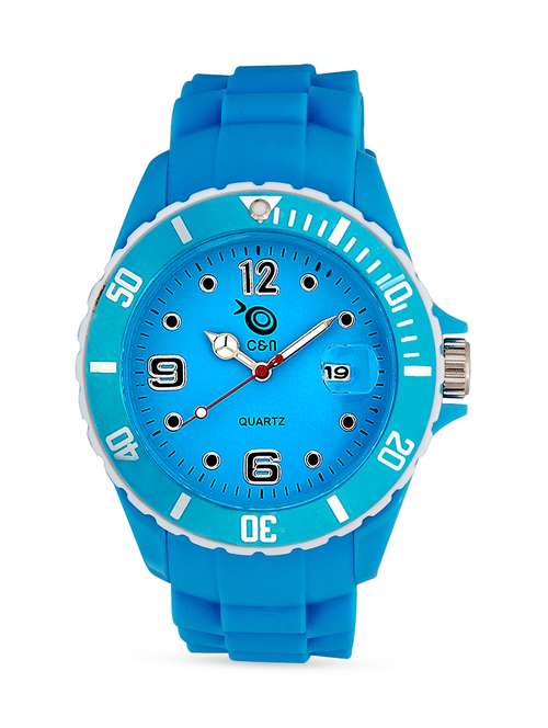 - » blue analog round dial watch