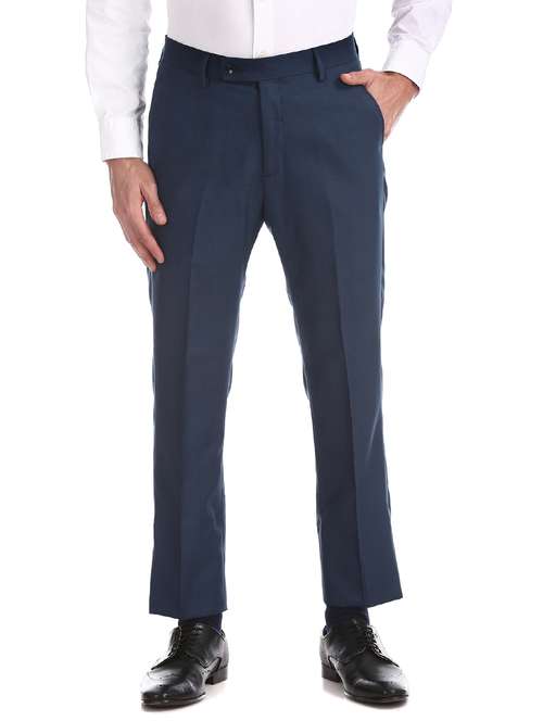 - » navy blue checkered flat front formal trouser