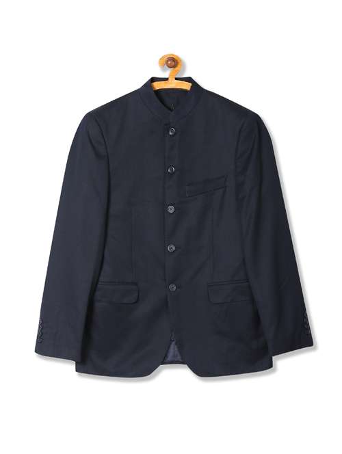 blue solid bandhgala suit