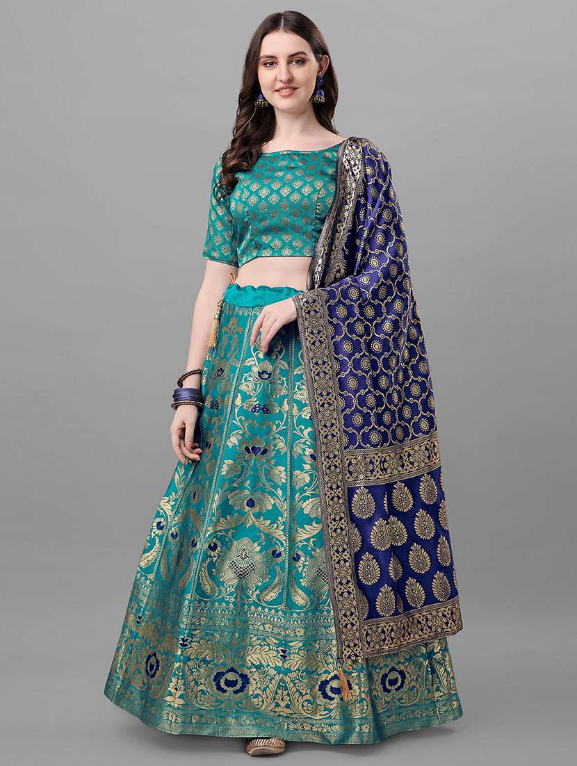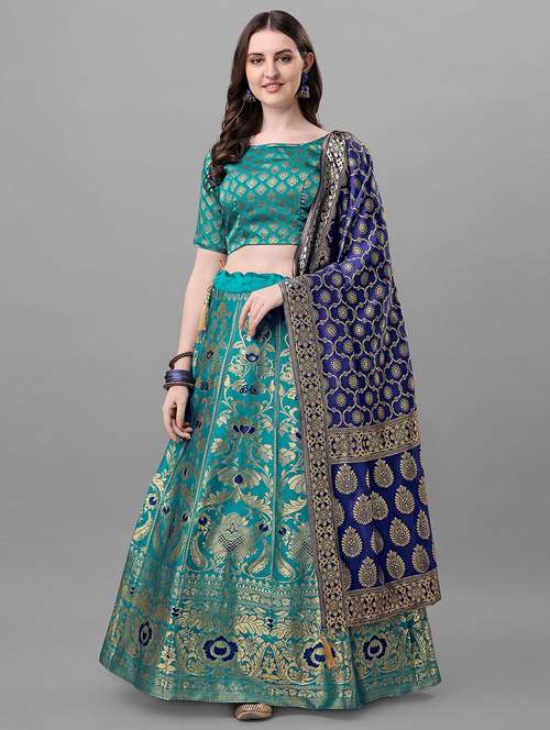 - » blue zari work flared lehenga