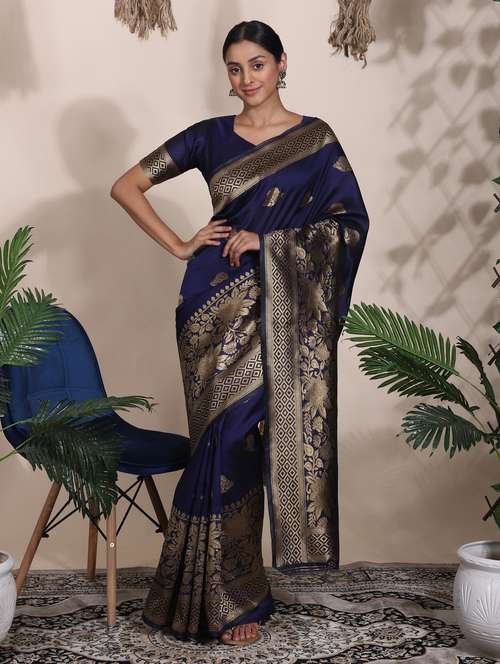 blue art silk banarasi saree with blouse