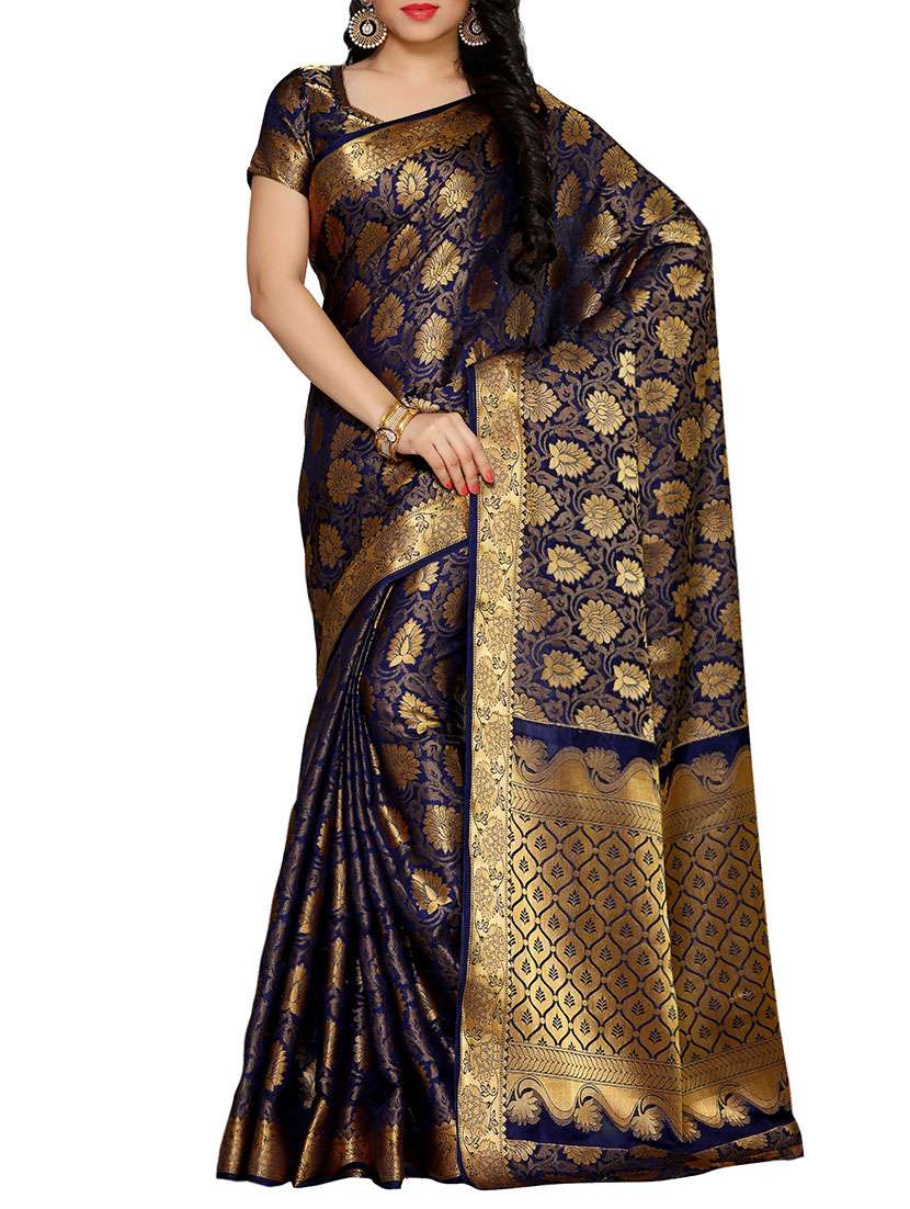 - » women's self design navy blue colored saree