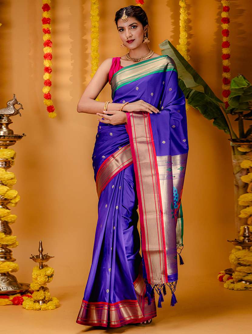 Mimosa's Paithani sarees epitomize the splendor of Maharashtra's cultural heritage with their exquisite craftsmanship and luxurious allure. Handwoven from premium silk, each saree boasts intricate zari work and vibrant motifs inspired by nature. From opulent peacocks to delicate lotuses, every detail is meticulously crafted by skilled artisans, creating a masterpiece of elegance and grace. Available in a kaleidoscope of colors, these sarees are perfect for weddings, festivals, and special occasions, radiating timeless charm and sophistication. Carefully preserved, a Mimosa Paithani saree is not just a garment but a treasured legacy, destined to be passed down through generations.
