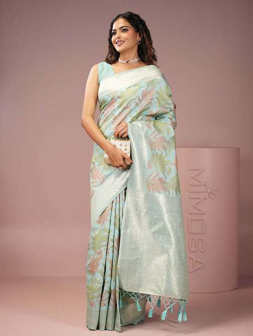 - » women printed zari bordered saree with blouse