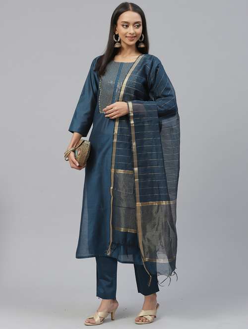 - » women teal kurta pant set with dupatta