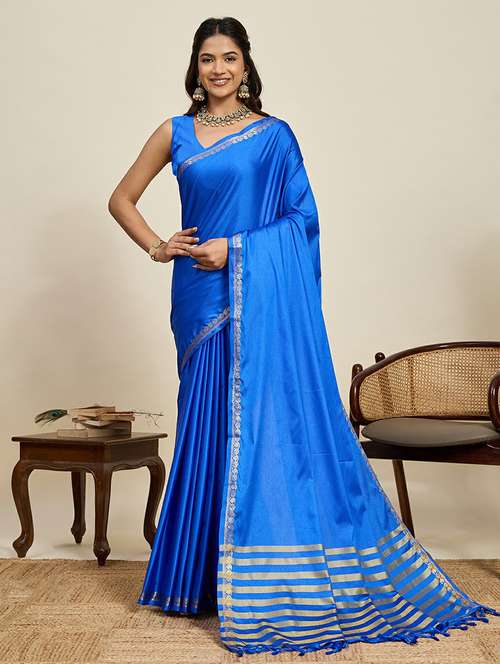 Blue Soft Silk Banarasi Saree With Attach Blouse Pies