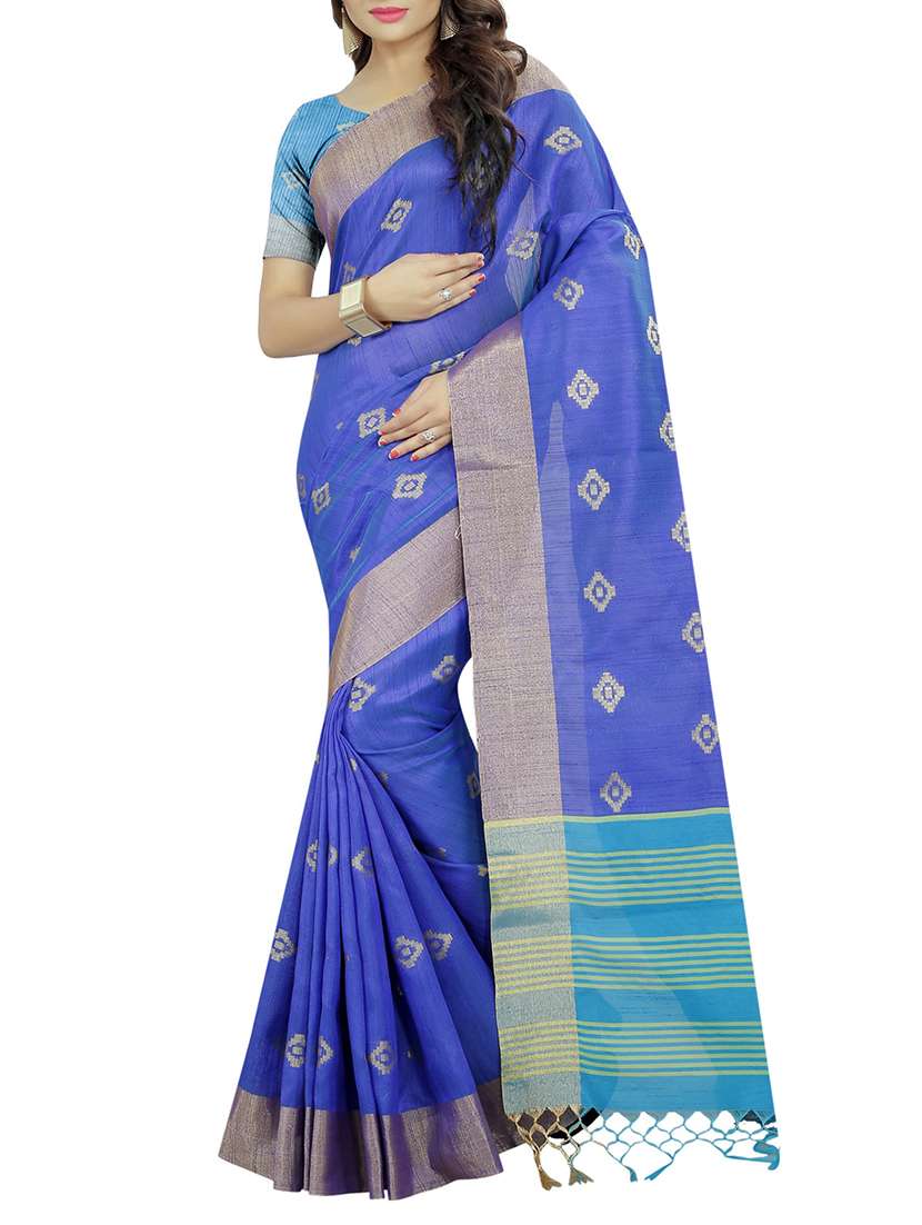 blue art silk woven saree with blouse