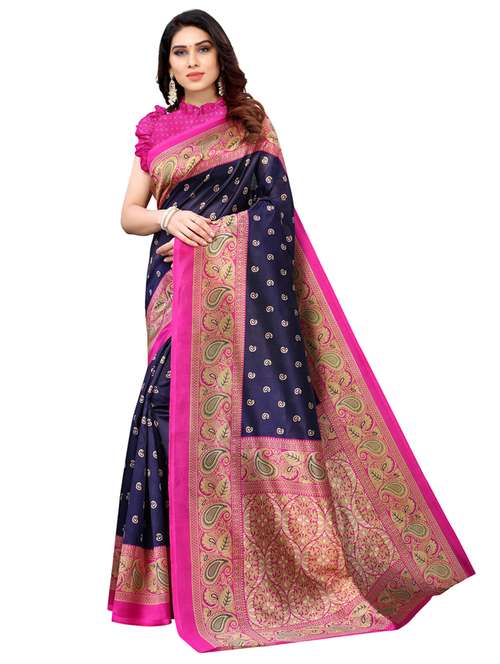 women's self design navy blue colored saree with blouse - 19628225 - Very Small Image - 1