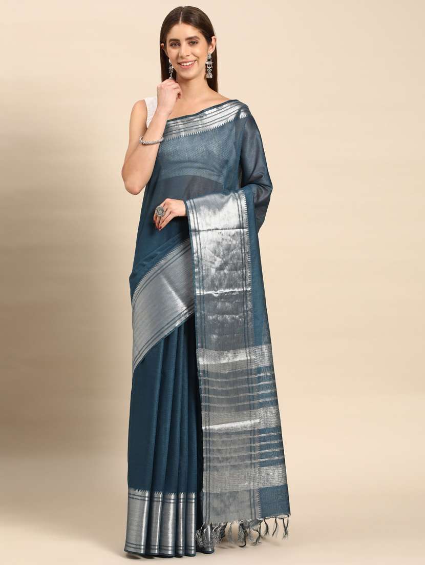 women's self design blue colored saree with blouse - 20406130 - Very Small Image - 1